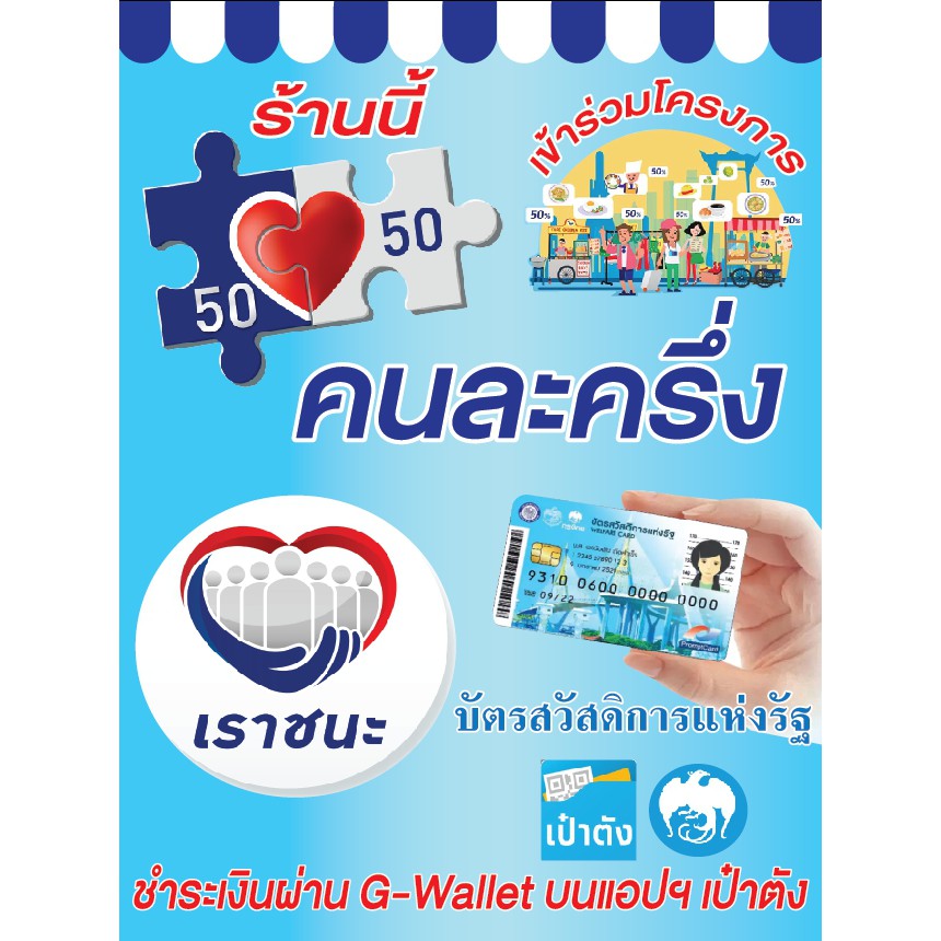 719.ออกแบบป้าย ม.33เรารักกัน เราชนะ คนละครึ่ง รับทุกโครงการ - โลโก้ ป้าย คนละ ครึ่ง เรา ชนะ